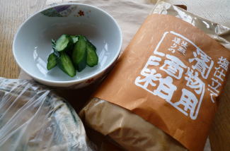 きゅうりを洗って、一本なり粕と一緒にビニール袋に入れるだけ。