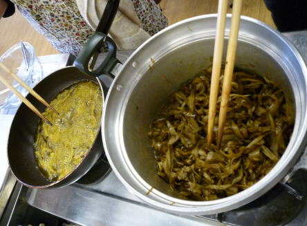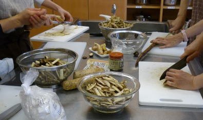‘白菜班’と‘ごぼう班’に分かれて作業しました。ごぼうだけでどんなお料理が出来るのかしらん(?)と思いつつ皆ひたすらごぼう切り。