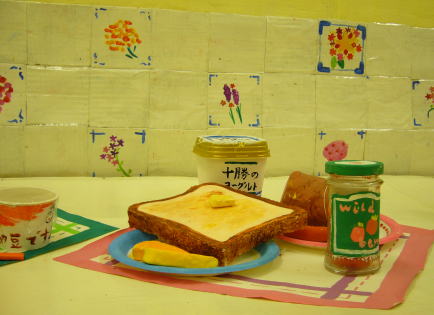 壁のタイルまで、ダンボールの手書き!!
