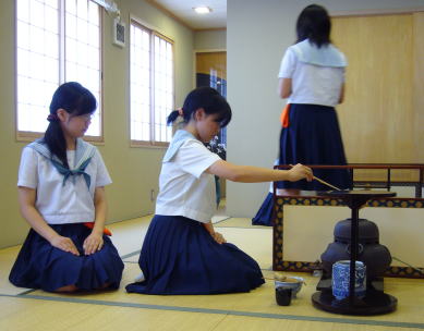 です、トホホ)茶道部でお茶を頂きました。