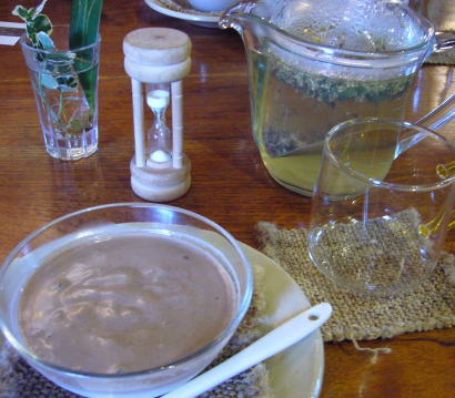 ←教室の後、先生と「カフェ・コフレ」へ。あいにくお休みだったので、そのまま「グリーンフェロー」へ。今日は、バナナ豆腐プリンと免疫UPハーブティーにしました。