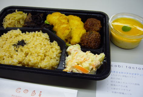 お約束のcobiさん弁当。デザート付き。