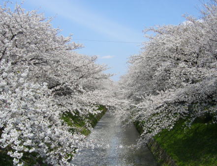写真は木津根橋から撮った堀川(黒川)沿いの