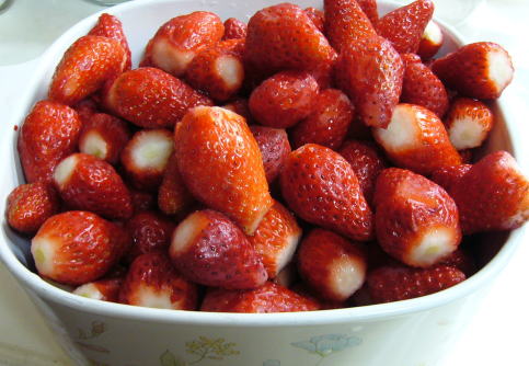 小牧さんのブログ(http://ameblo.jp/energyshokudo )で、苺にハチミツを加え強火でさっと煮ると、美味しいコンフィチュ―ルになるとありました。