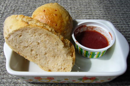 苺ソースをつけてパクリ。