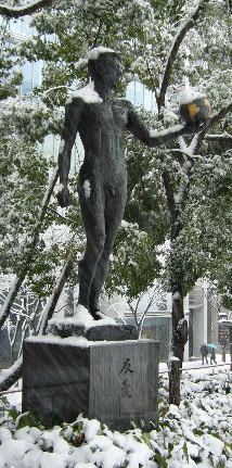 公園の銅像に何か着せてあげたかった…