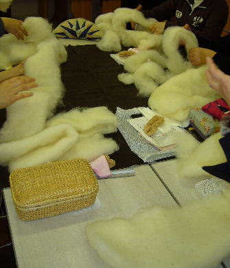 羊毛は丸める加減がなかなか難しいですね。