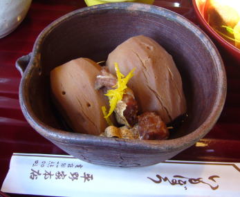 名物‘海老芋と棒鱈の炊き合わせ’は柔らかくて美味しかったです。まだ数えるほどしか京料理は食べた事はありませんが、ここは全体にしっかりした味付けに思えました。芋尽くしに満足して、「知恩院」へ。日頃の運動不足で、階段にひーひー