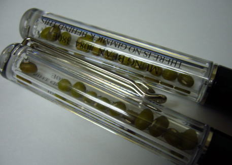今、このお豆のペンを使って、心を込めて賀状を書いています。