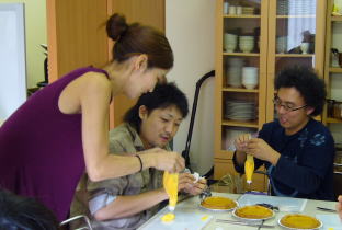 前夜、25個のパイを焼き、かぼちゃ5個でフィリングを作ってきて下さった先生、凄~い