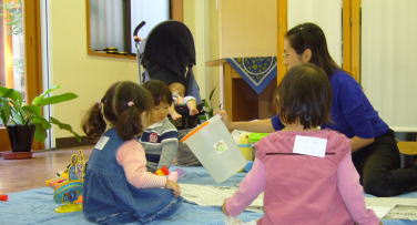 キッチンスタジオの隣のお部屋で、シッターさんと楽しく遊んでいます。