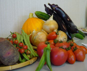 写真は入口に飾られていた「土磨」さんの野菜。大きくて、つやつやしていて、美味しそう~。
