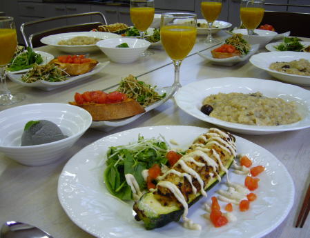 ズッキーニが素敵な一皿になりました!丁度、今はズッキーニが出回る時期。「これ、いいですねー」「早速作ります」と、好評でした。豆腐マヨネーズを写真のように、ちょっとおしゃれに飾ってお出ししたら、びっくりされるんではないでしょうか。前回もご紹介したこの‘豆腐マヨネーズ’、本当に便利で、大活躍。