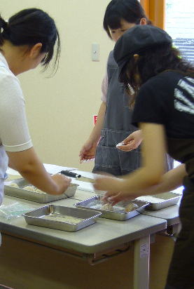 が担当させていただきました。単品で食べた時は「甘くて、おいしい~」と思ったのですが、他のメニューの味が強かったせいかパンチに欠けてしまいました。やはり、トータルで先生に考えていただかないと・・・。チャングムにはまだ遠い(ハァ~)。“味を描く”というのは天性の才能でしょうかネー。