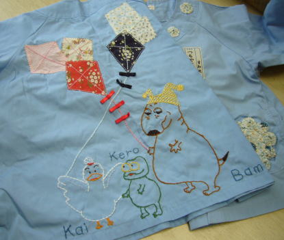 これが、下の娘がかれこれ10年ちょい前に着ていた「みこころ幼稚園」の園児服です。我が家は「バムとケロ」の大ファンで、背中に大きく刺繍してやりました。何でも駄目にする下の子にしては、奇蹟的にきれいな状態で残っています。如何ですか?