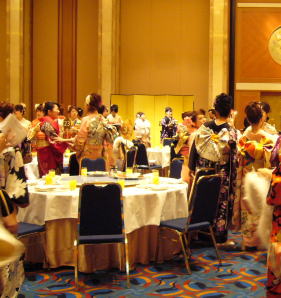 そして今日5日は上の子の‘成人を祝う会’がヒルトン扇の間でありました。別名‘振袖会’と言われるだけあって、振袖姿のお嬢さん達が総勢250名余。壮観!そして賑やかなことといったら!。「汚さない様に」の命を受けて、ウチの子はひたすら食欲を抑えてお利巧に飲まず食わず。可哀想?でも懐かしい先生方に会えて、楽しかった様です。よかったねー。