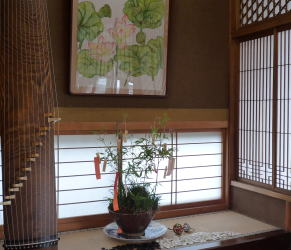 道の駅「立田ふれあいの里」で、お惣菜の蓮根料理をお土産に買い、地元のスーパー(←‘元気村’のような処、「はすの実」の直ぐ近くです、名前失念!切花が激安!)でお野菜を買って、第二の目的地、『機石荘(きせきそう)』へ。