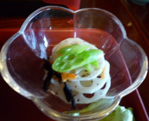 この中で目をひいたのは、朝取りの蓮の軸をさっと湯がいたもの。