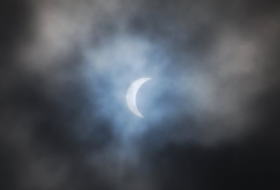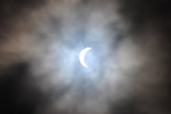 「生憎の天候であきらめていたのですが・・・雲間からなんとか撮影できました。雲があったおかげで三日月型がはっきり捕えられました。添えておきます。」