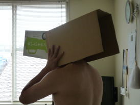 雨だとおもっていたら、降らないのであわてて観測装置(?)を作る主人です。