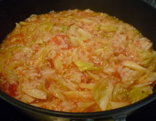 、いつも一番は小幡先生!)そう言いつつも、昨夜もこのキャベツとトマトのリゾットを再度リクエスト。