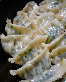 『青菜料理』P14、‘青菜ぎょうざ’で食べてみました。凄くマイルド。